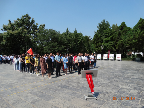在中国共产党诞生98周年、新中国成立70周年之际,教育科学系党总支按照学校党委的工作要求于7月6日上午,系党总支书记庞国民带领党总支成员和部分党员教师代表赴兰考县开展了主题党日活动,本次活动的主题是“缅怀革命先烈、坚守理想信念、不忘初心、牢记使命”。