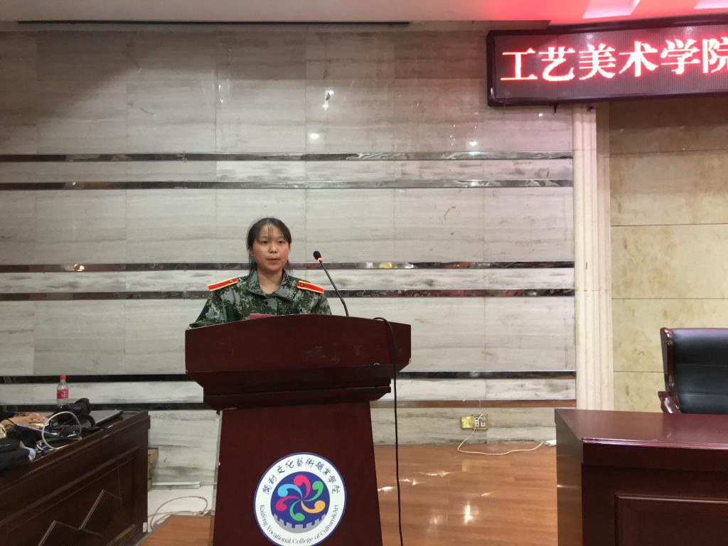 2018级工艺美术品设计班的崔馨伊同学作为老生代表欢迎学弟学妹们加入工艺美术学院这个充满激情与梦想的大家庭! 崔馨伊同学说,大学生活是多姿多彩的,她与新同学们分享了入校一年来的生活,她努力学习,半夜两点还在为完成一次作业挑灯夜战;并且加入了学生会,参加每一次的校园志愿者活动,充实自己的大学生活;还在节假日还在户外参加“墙绘”社会实践。她还劝告新同学,大学时光非常短暂,要尽快适应新的生活,计划好每一天,一如既往地勤学善问,积极向上,不断创造人生的精彩!
