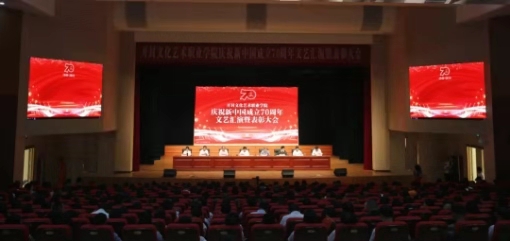 27日下午,全校教职员工欢聚一堂,在演艺中心举办“庆祝新中国成立70周年文艺汇演暨学校表彰大会”,以丰硕的成绩、精彩的文艺汇演表达对祖国母亲的深厚情怀,展示开封文职院师生朝气蓬勃的精神风貌和对教育事业的坚定信仰与使命传承。